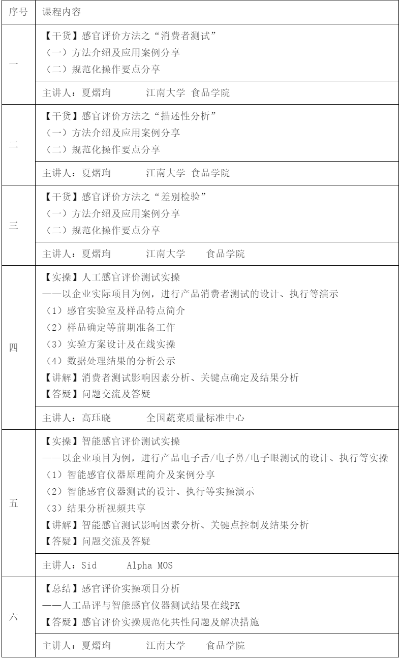 食品伙伴網(wǎng)感官項目團隊通過對大量中小企業(yè)感官需求的收集匯總發(fā)現(xiàn),實現(xiàn)企業(yè)感官評價的“從0到1”,以及從1到落地實踐應用,理論聯(lián)系實際,是眾多企業(yè)的迫切需求點。我們基于這些方面的綜合考量,特設置了本次公開課,邀請來自一線具有多年感官評價實踐經驗的老師,從解決企業(yè)實際應用問題的角度出發(fā),為大家在線進行全面的分享!