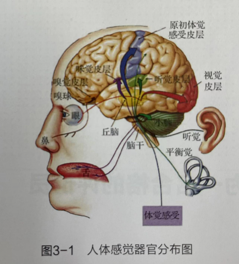 感官評價,簡單地講,就是運用感官進行評價。正常的感官(鼻、眼、口、舌、耳)以及對應(yīng)的嗅覺、視覺、味覺、口腔觸覺、聽覺等感覺功能健全是感官評價員最基本的生理條件(圖3-1),也是評價員初篩和選拔過程中關(guān)鍵的考察指標(biāo)。