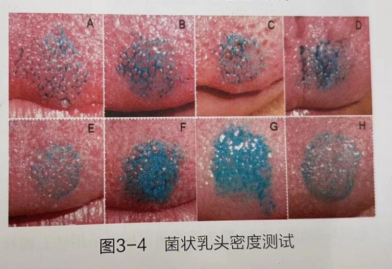 目前,可采用菌狀乳頭密度測試(圖3-4)、味覺敏感度(味閾值)測試、味覺電生理功能測試(圖3-5)等方法來考察評價員的味覺生理狀況。