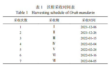 沃柑均采自廣西某沃柑種植基地,每間隔20d采摘一次,采收期與采收時間見表1。
