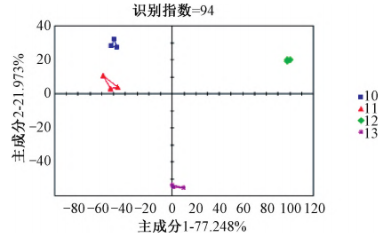 生地黃電子鼻分析結(jié)果懷區(qū)不同主栽品種生地黃鑒別