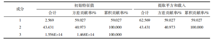圖5 不同發(fā)酵方式的柿子酒感官評價雷達圖 主成分分析 用SPSS軟件對表3中的數(shù)據進行主成分分析,得到兩個主成分,如表4所示。其中第一主成分貢獻率為59.027%、第二主成分貢獻率為40.973%。 表4 主成分分析中解釋的總方差