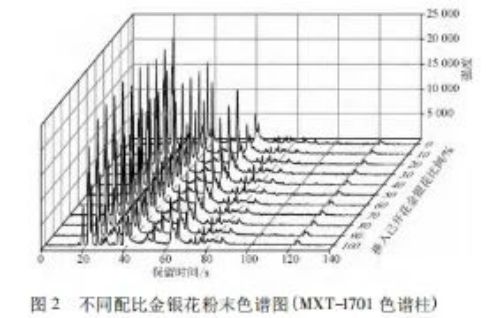 采用HeraclesⅡ超快速氣相電子鼻對不同調(diào)配比例金銀花粉末樣品的色譜數(shù)據(jù)進行采集,分析后得出,各調(diào)配比例金銀花粉末的可能成分及感官描述信息基本相同,僅含量存在一定差別。同時,得出己醛氣味可能為判別金銀花粉末質(zhì)量的關(guān)鍵因素。此外,通過PCA,DFA,實現(xiàn)了打粉后摻入完全開花金銀花比例的快速識別,而且2種模型起到了相互驗證的作用。在采用濃度量化建模后,還實現(xiàn)了基于完全開花金銀花摻入比例的粉末質(zhì)量分級。綜前所述,HeraclesⅡ超快速氣相電子鼻分析可以作為一種快速鑒別金銀花粉末質(zhì)量的方法。