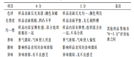 表1 感官評(píng)價(jià)標(biāo)準(zhǔn)表