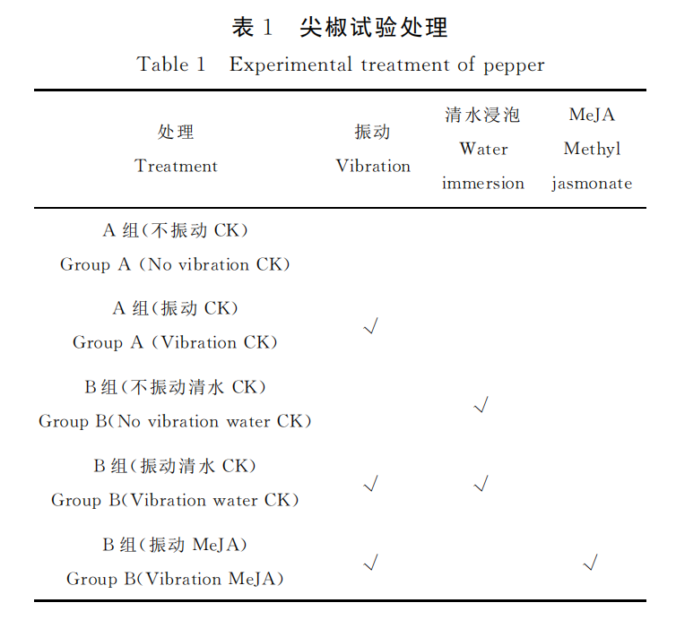茉莉酸甲酯(MeJA)是植物中天然存在的生長(zhǎng)調(diào)節(jié)因子,在調(diào)節(jié)植物脅迫反應(yīng)和發(fā)育過程方面發(fā)揮著重要的作用。MeJA可以修復(fù)果蔬外來的機(jī)械損傷,防止病原菌侵染,還可促進(jìn)果蔬營(yíng)養(yǎng)成分的有效積累,提高果實(shí)的營(yíng)養(yǎng) 價(jià) 值,延 長(zhǎng) 其 貯 藏 期。但MeJA 在振動(dòng)蔬 菜 上 鮮 有 研 究,因 此 該 研 究 利 用電子檢測(cè)技術(shù)分析尖椒、青圓椒、西蘭花3種蔬菜在運(yùn)輸振動(dòng)后氣味品質(zhì)的變化,探究茉莉酸甲酯處理對(duì)振動(dòng)后果蔬氣味品質(zhì)的影響。材料與方法