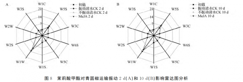 茉莉酸甲酯對(duì)尖椒運(yùn)輸振動(dòng)影響雷達(dá)圖分析