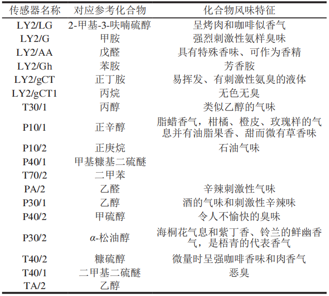 表2 不同傳感器對(duì)應(yīng)的參考化合物