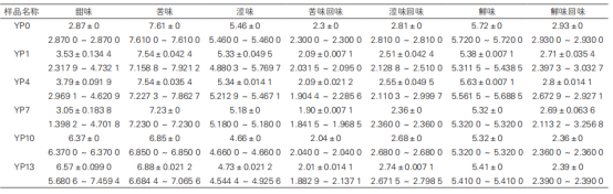 2.1電子舌味覺測(cè)定結(jié)果