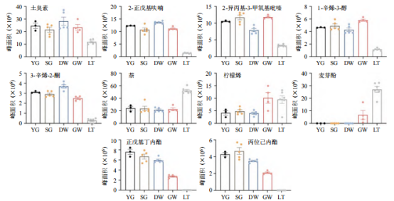 綜合分析,略燙后曬干品較其他市場主流加工品,土臭素、2-正戊基呋喃、2-異丙基-3-甲氧基吡嗪、1-辛烯-3-醇、3-辛烯-2-酮這5種“特異氣味”成分得到了較好地祛除或降低,丙位己內酯、正戊基丁內酯這2種內酯類成分未被檢測到,萘、檸檬烯、麥芽酚這些具有芳香特性的揮發(fā)性成分得到了提升或保留。Heracles NEO超快速氣相電子鼻分析