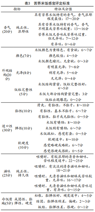 邀請10位具有感官品評經(jīng)驗(yàn)的人員,對苦蕎米飯進(jìn)行感官評價(jià),評分細(xì)則見表3。