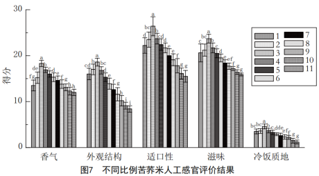 2.4不同比例苦蕎米飯的人工感官評價(jià)分析