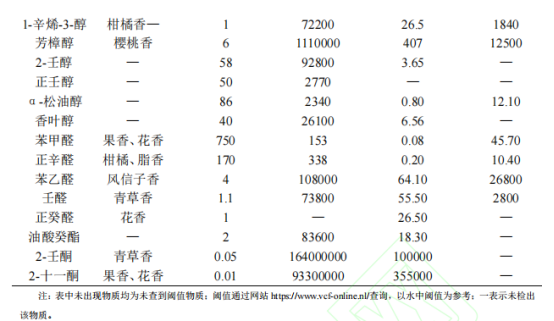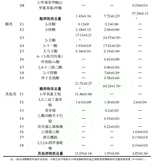 表1 發(fā)酵前后濃汁中揮發(fā)性風味物質含量